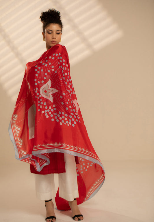 Whimsical Swirls Rust Printed & Embroidered Georgette Saree