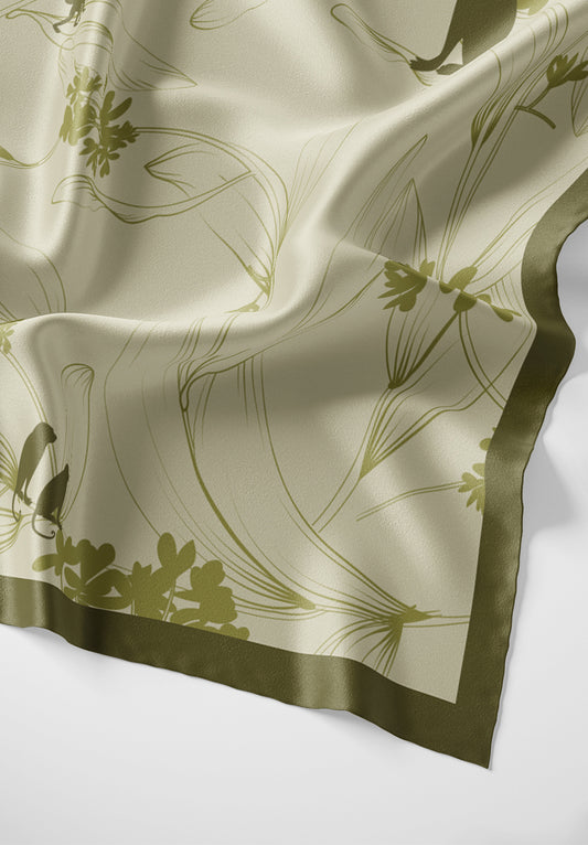 Whimsical Swirls Light Olive Printed & Embroidered Georgette Saree