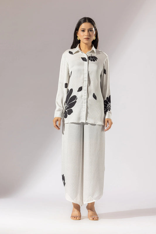 Light Grey Floral Stripe Cotton Mul Printed Shirt