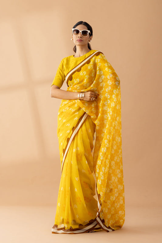 Yellow Petal Shower Printed Chiffon Saree
