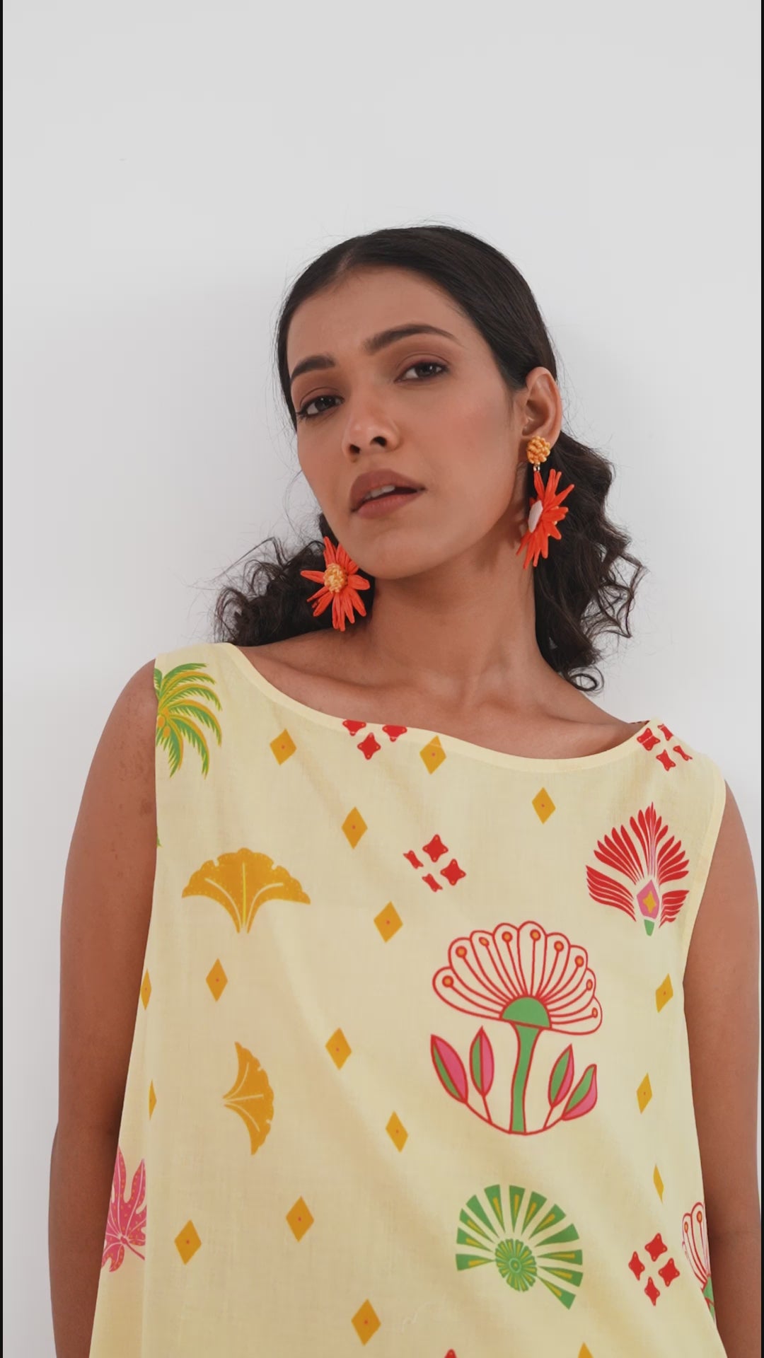 Shine bright in our Butter Bloom Flared Dress. This dress showcases artistic abstract flower prints in vibrant contrasting shades. The flared silhouette offers a playful, flowing look, while slit pockets add practical convenience. Perfect for adding a touch of abstract element to your day.