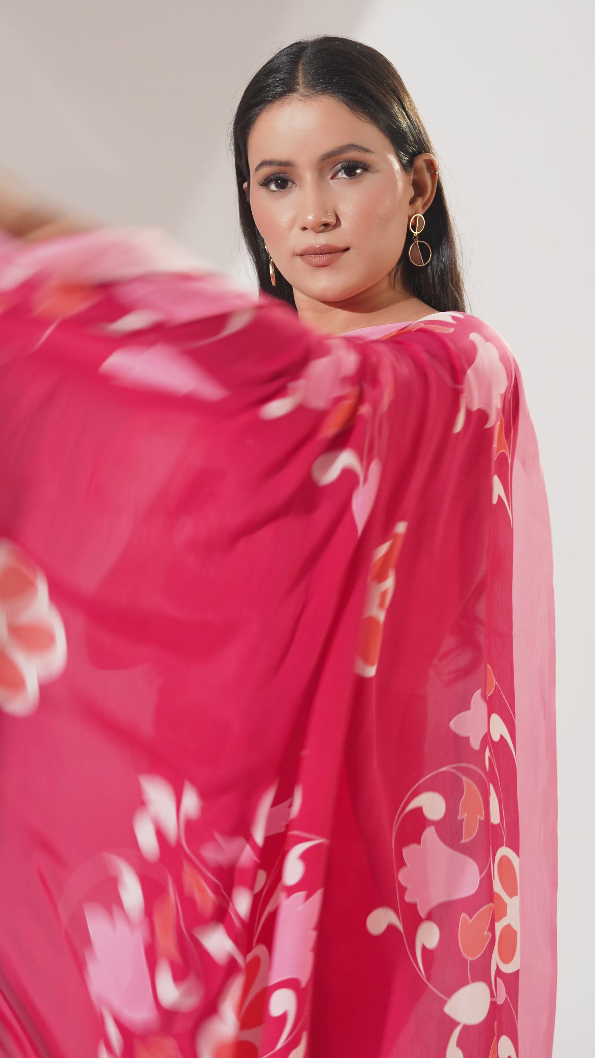 Floral Symphony Printed Crepe Saree